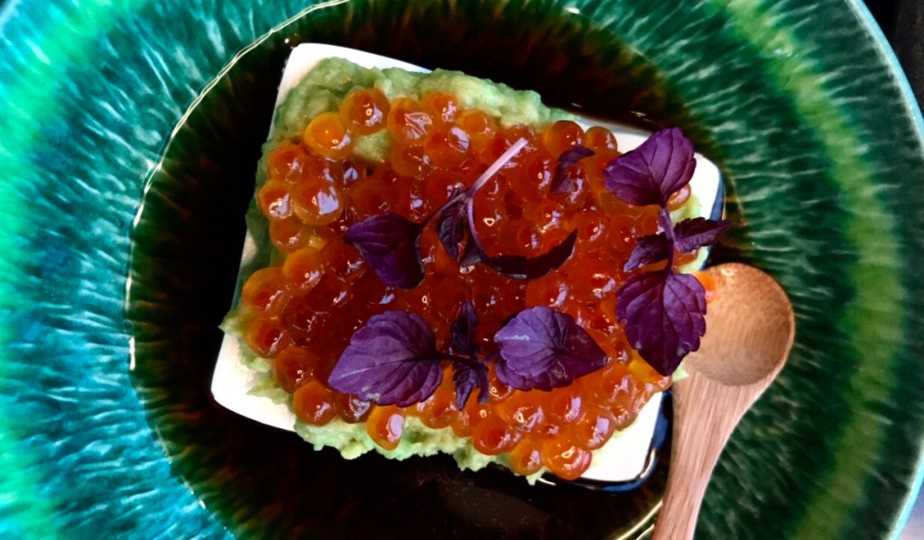 Oh, and if you are wondering what’s in that first eye catching dish that looks like an iris, it’s Tofu with avocado, Dashi, Ponzu and sesame Bonito.