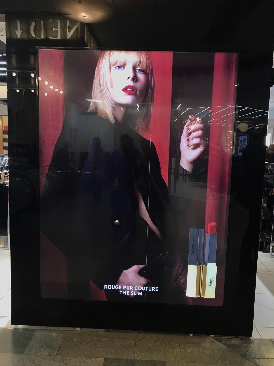 I’m going back to the other side. This is something I am or will be so I’m about to get that little slim red lipstick from Yves Saint Laurent. Watch me.